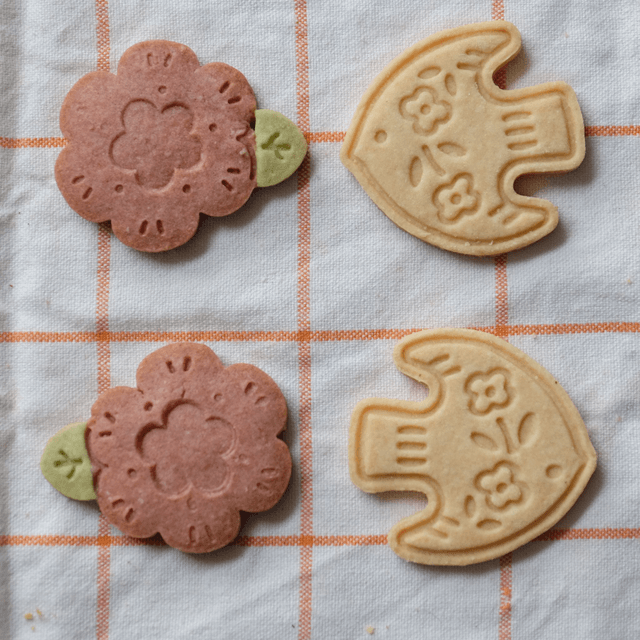 Ingredients: Wheat, milk, butter, pandan powder, strawberry powder.